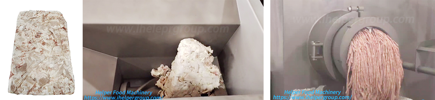 Industrial meat mincer Grinds frozen meat blocks directly to grains of different sizes without damaging the muscle fiber, with minimal temperature rise to keep the meat fresh.