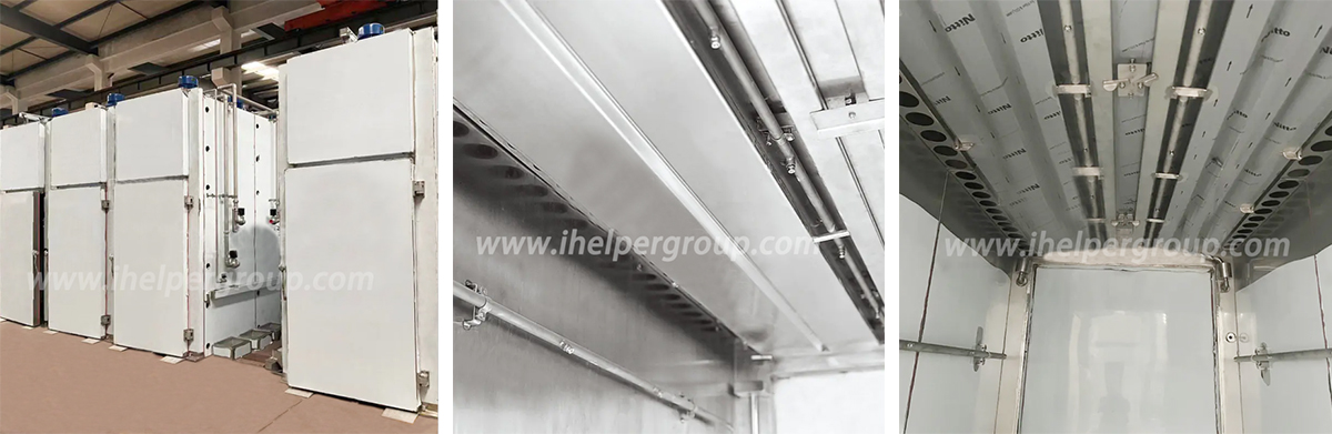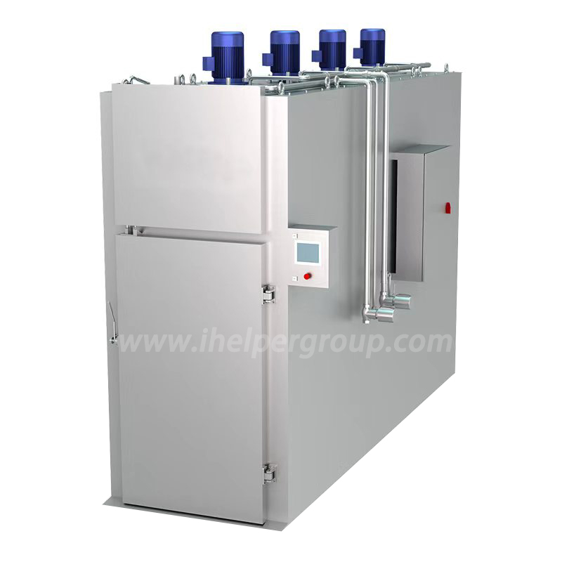Our industrial blast chiller is specially used for rapid cooling of sausages and meat products coming out of the smoked oven. The heat-processed products are directly pushed into the furnace and sprayed with water and forced cold air. After being rapidly cooled to the required core temperature (usually 12°C), they can be directly sent to the packaging process.