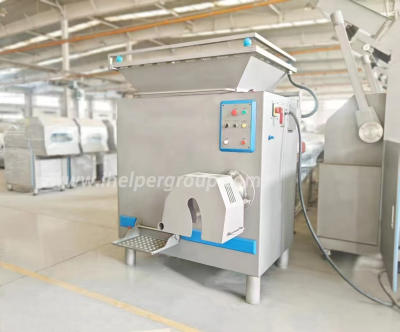 The industrial mincer machine offers exceptional efficiency by processing large volumes of meat quickly and uniformly. Its dual augers ensure thorough mixing, seamlessly blending meat, fats, and seasonings for a consistent texture.