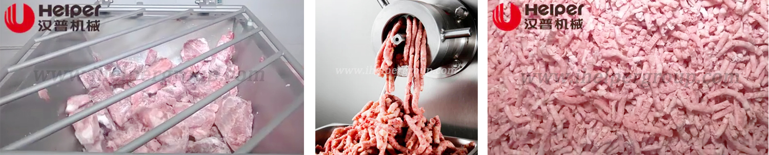 The industrial meat mincer is sturdy and can efficiently process frozen meat at -18 degrees Celsius without thawing. It is equipped with a powerful motor to ensure smooth and consistent mincing, which can meet various meat processing needs.