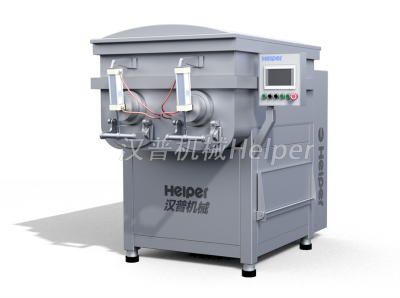 This vacuum twin-shaft mixer offers superior processing results for a wide range of meat products, including sausages, ham, hamburgers, dumpling fillings, and cured meats.