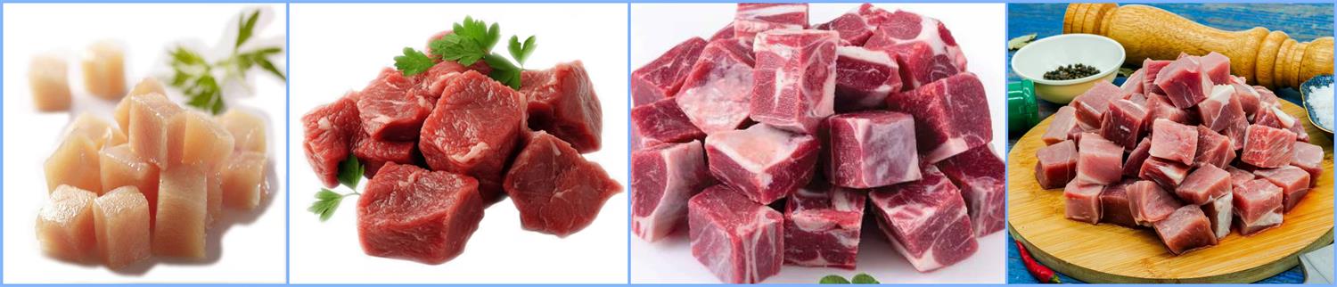 Our meat cube cutting machine is designed and manufactured with reference to advanced foreign machinery. It can cut “dices”, “strips” and “blocks” and can realize a variety of processing methods. Meat cube cutting machine adopts a conveyor belt feeding mechanism and is equipped with a combination of disc knife and chopping knife to implement a perfect cutting process. It is convenient, practical and has a large output.