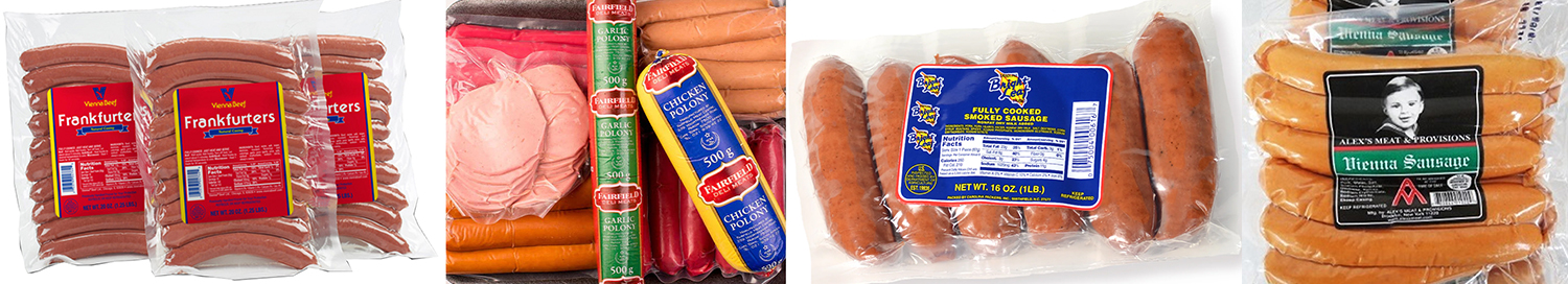 Sausage packing line is suitable for the automatic feeding and packaging of stretch film wrapping machines for products such as hot dog, polony, Vienna sausages and similar-sized standardized products. The product diameter ranges from 16-32 mm, length from 60-140 mm, and weight from 30-70 g (customizable based on product diameter and length).