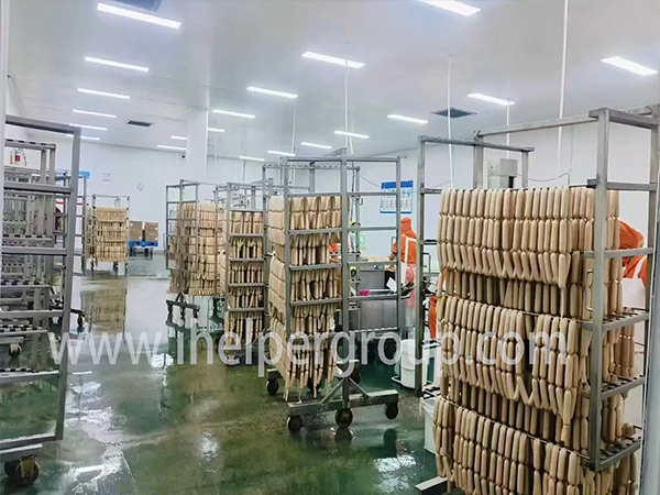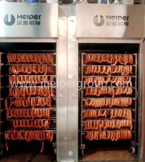 The sausage trolley is made of food-grade stainless steel, which is corrosion-resistant, easy to clean, and ensures food safety and hygiene. The smoke trolley’s rational structural design allows for multiple layers of sausages, cured meats, and other products to be hung, effectively improving smoking efficiency and space utilization. The smoke trolley operates smoothly and is equipped with a precise temperature control system to achieve uniform smoking results.